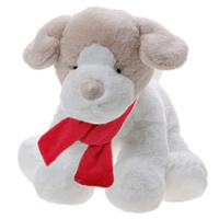 Pies Renee biało-beżowy 25 cm z czerwonym szalikiem