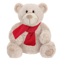 Miś Jacobe beżowy 35 cm z czerwonym szalikiem